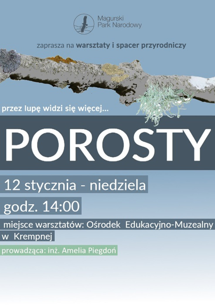 Wstęp: Przed nami wiele ciekawych zimowych wydarzeń, podczas których uważniej spojrzymy na pozornie surowy i monotonny o tej porze roku świat wokół nas. Wydarzenia zebraliśmy pod wspólną nazwą „Zimoświaty”. Pierwsze z nich będzie poświęcony porostom.